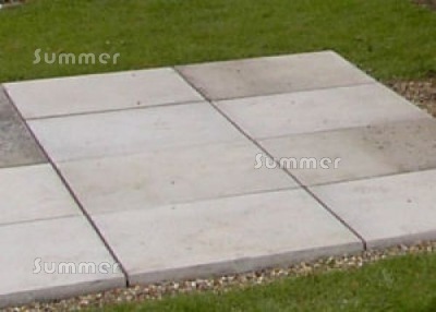 PICTURE: A paving slab base with smooth vibrated grey concrete slabs.