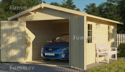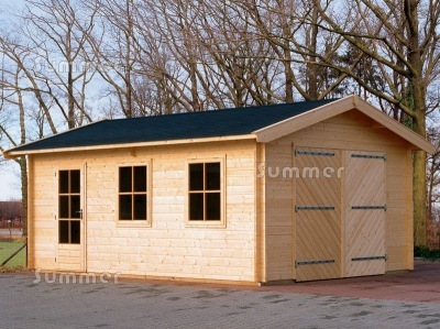 We offer two distinctly different types of wooden garages, log garages and shiplap garages. A log garage features no intermediate vertical framing and thicker wall logs than the wall cladding in a shiplap garage. The logs are normally notched out at each end to form a criss-cross corner joint. However, some modern log cabins feature corner posts instead of traditional joints. Also, some log cabins include prefabricated roof elements, although these panels are generally much smaller than traditional panel-construction buildings.