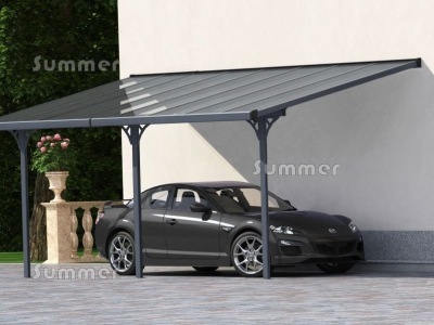 PICTURE: A 10'x16' (3x4.8m) lean-to carport with a polycarbonate roof.