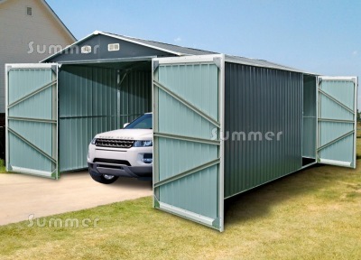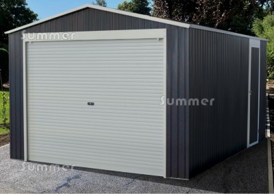 Our ever popular metal garages provide such great value, with so much garage for your money. All framing and cladding is galvanized steel, with a zinc coating to protect it from corrosion. The cladding is subsequently coated with epoxy resin, partly to protect the zinc coating itself and partly to add colour. The factory finish is described as primer although a top coat is not normally needed. The combination of a zinc coating with epoxy resin provides durable protection even if the surface is scratched. In common with all other steel buildings, including even the largest sports stadia, retail superstores and warehouses, steel cladding sheets are surprisingly thin. The strength of steel buildings is provided by the frame, although the corrugations of the cladding sheets do provide a degree of extra strength. These metal garages feature strong galvanized steel framing members and the completed frame is rigid. We offer metal garages with a choice of rollershutter doors or double hinged doors. Metal garages are supplied as a flat-pack kit and not in large pre-fabricated panels. People are often surprised at how compact the packaging is on delivery. A metal garage is low maintenance with no regular maintenance required as with a timber garage, just an occasional wash with soapy water.