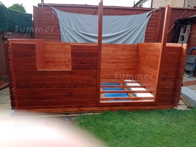 Based on average coverage five litres of our 4 star preservative is enough for two coats on an 8'x10' shed or an 8'x8' log cabin. Ten litres is enough for three coats on a 10'x16' shed or a 12'x10' log cabin. Coverage varies according to the smoothness of the surface and the porosity of the timber. We recommend that you order more than you need to be sure that you have easily enough. All of these preservatives are safe for use with children and pets. These microporous preservatives are only available when you purchase a Summer garden building or if you purchased a Summer building in the past. Prices include free mainland delivery to England, Wales and southern Scotland. Colours are only as accurate as reproductive techniques allow.