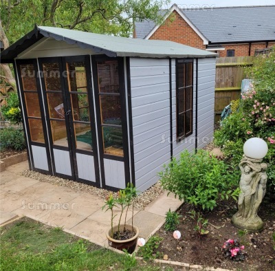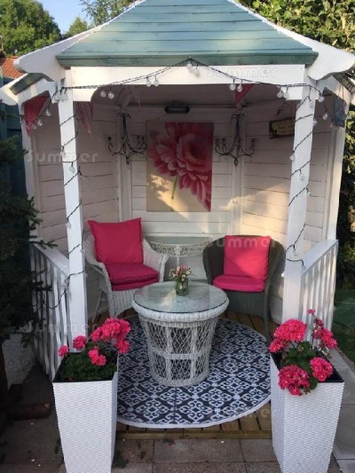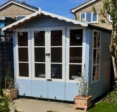 I purchased my Summerhouse from you, which was delivered in April, I just wanted you to know how very pleased I am with it. My son who is a carpenter erected it and found the instructions straight forward to follow, I am now enjoying my summerhouse and enclose a picture, I have painted inside too. Thankyou.