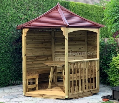 Product Type: Wooden Gazebo 087 - Hexagonal, Pressure Treated, Slatted Roof