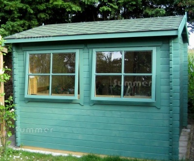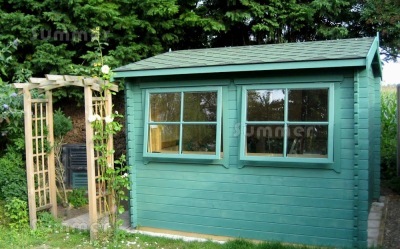 These substantial garden sheds are available in 3 widths and 4 lengths. The widths 8' (2.4m), 10' (3.0m) or 12' (3.6m). The lengths are 10' (3.0m) 12' (3.0m), 14' (4.2m) or 16' (4.8m). All timber is FSC® certified. Features includes a choice of 28mm, 34mm, 45mm or 70mm thick wall logs, double doors, 2 opening side windows and a tongued and grooved floor and roof. Pressure treated floor joists and good quality joinery doors and windows are also included. The ridge height is under 2.5 metres high to avoid planning restrictions. Felt tiles are available as option. Detailed instructions are supplied for DIY self assembly. We offer fitting as a low cost option in many areas.
